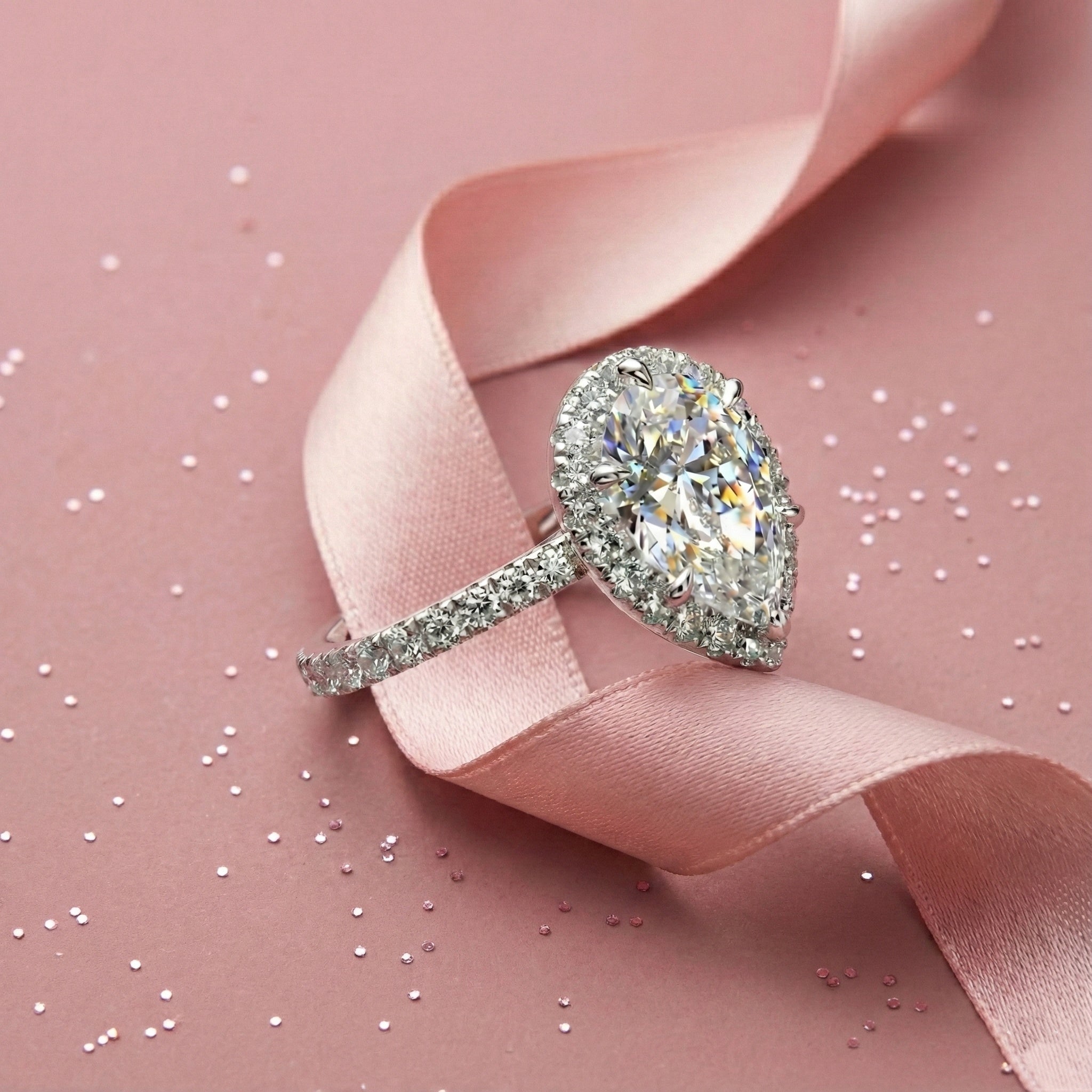 Chunky Pave Pear Cut 5.0ct Engagement Ring In Sterling Silver