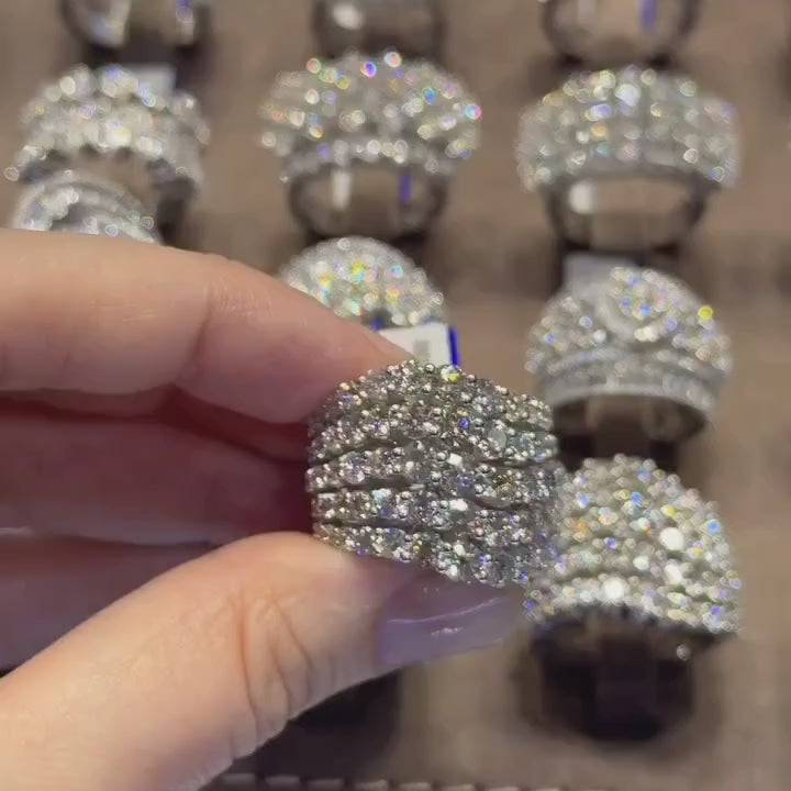 Dazzling 925 Sterling Silver Pave Round Cut Wide Band Wedding Ring