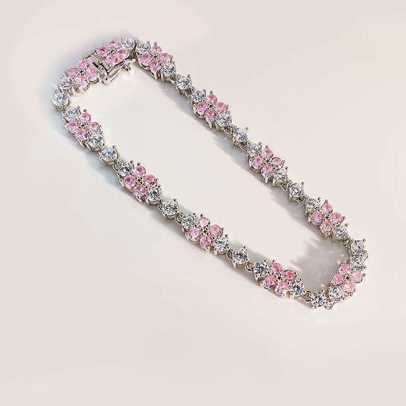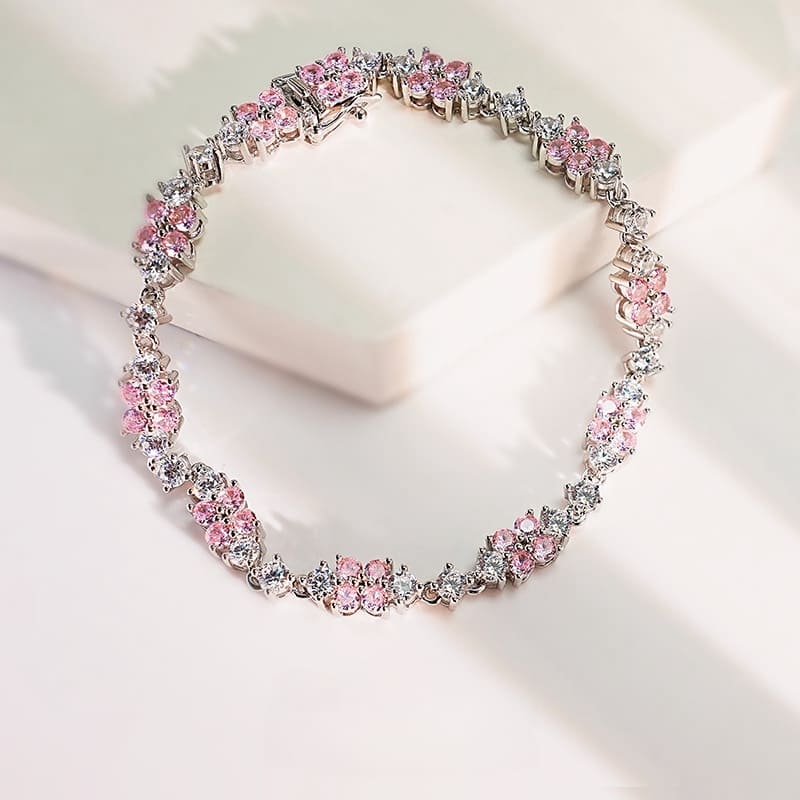 Delicate Round Cut White and Pink Stone Bracelet for Women