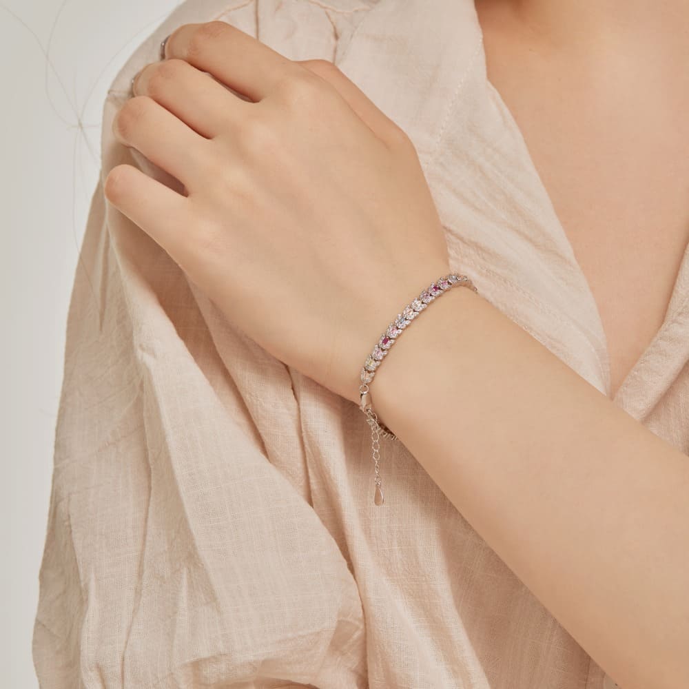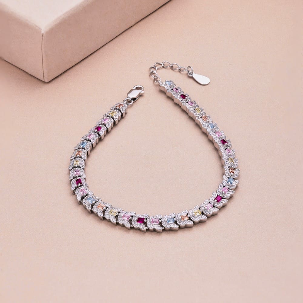 Regal Emerald Cut Bracelet for Women, Accented with Pink, Ruby, Aquamarine, and Yellow Stones