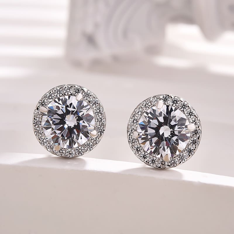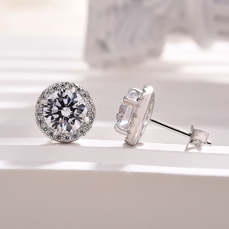 Chic Halo Round Cut Women's Stud Earrings In Sterling Sliver – SolariiJewelry