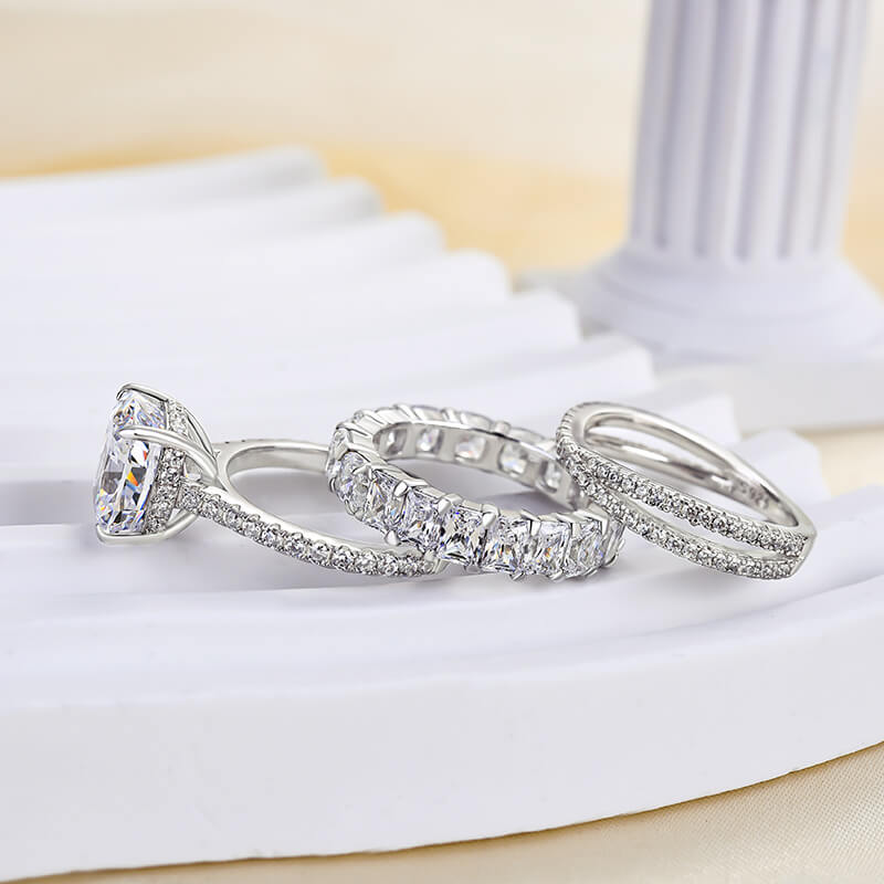 Solarii Cubic Zirconia 4.0ct Cushion Cut 925 Sterling Silver Wedding Ring Set