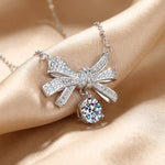 Moissanite Round Cut Bowknot 925 Sterling Silver Necklace