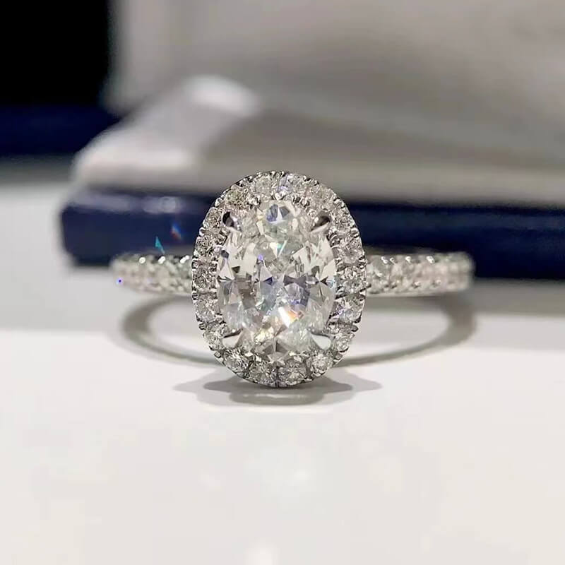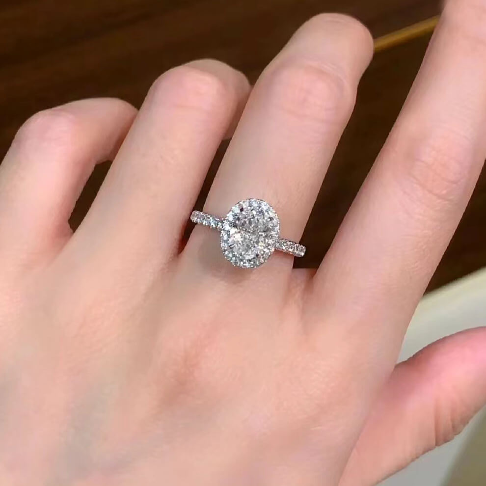 Stylish Halo Oval Cut 2.0ct Engagement Ring In Sterling Silver – SolariiJewelry