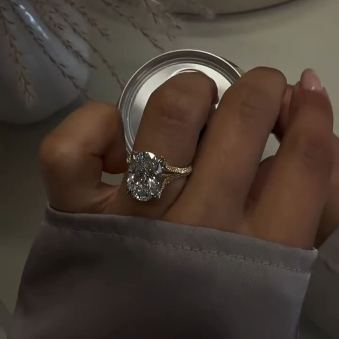 Curvaceous Split Shank Oval Cut 5.0ct Engagement Ring In Sterling Silver