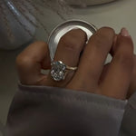 Elevate your engagement with this striking oval cut ring, featuring a 5.0ct center stone set in lustrous sterling silver. The curvaceous split shank design creates an elegant flow toward the stone, adding dimension and visual interest while maintaining a refined silhouette. This architectural approach complements the oval's elongated brilliance, making it an ideal choice for those seeking a sophisticated alternative to traditional solitaire settings. Premium sterling silver construction ensures durability and timeless appeal, while the generous carat weight delivers impressive presence and sparkle.