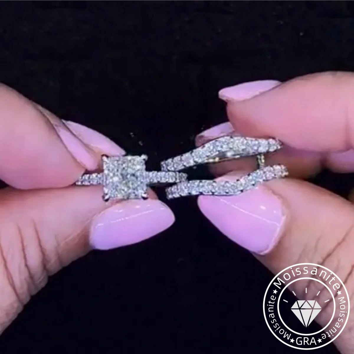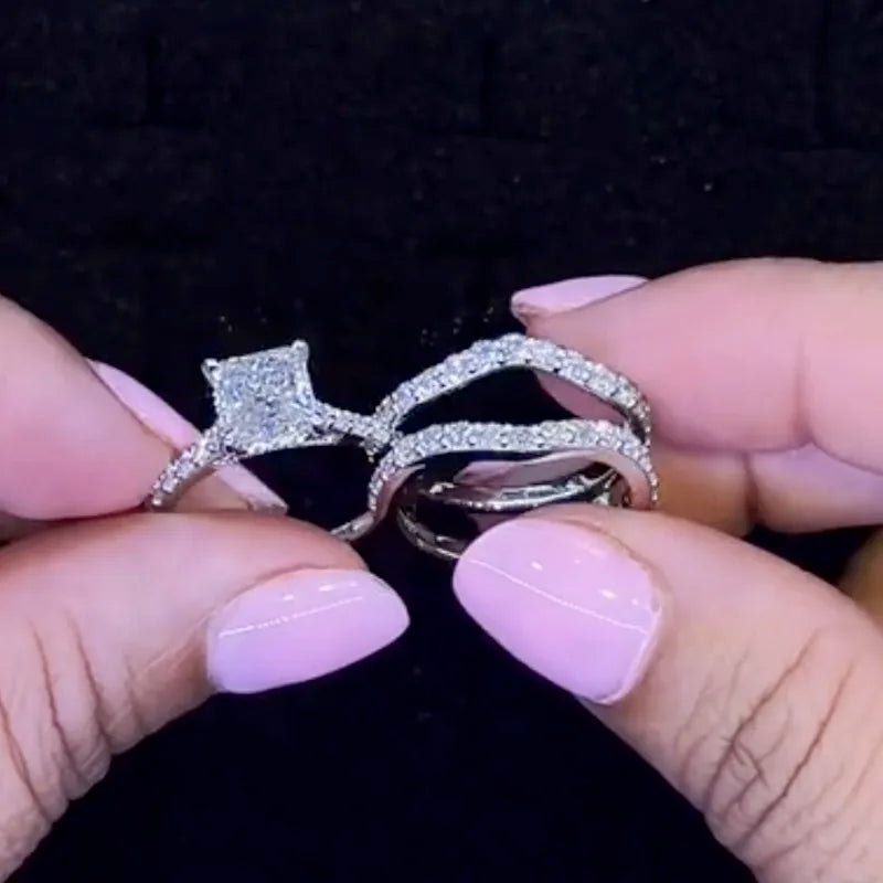 Princess Cut White Gold Plated 925 Sterling Silver Ring Set with Cubic – SolariiJewelry