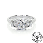 Gauzy Solarii Moissanite 2.0ct Cushion Cut 925 Sterling Silver Three Stone Engagement Ring