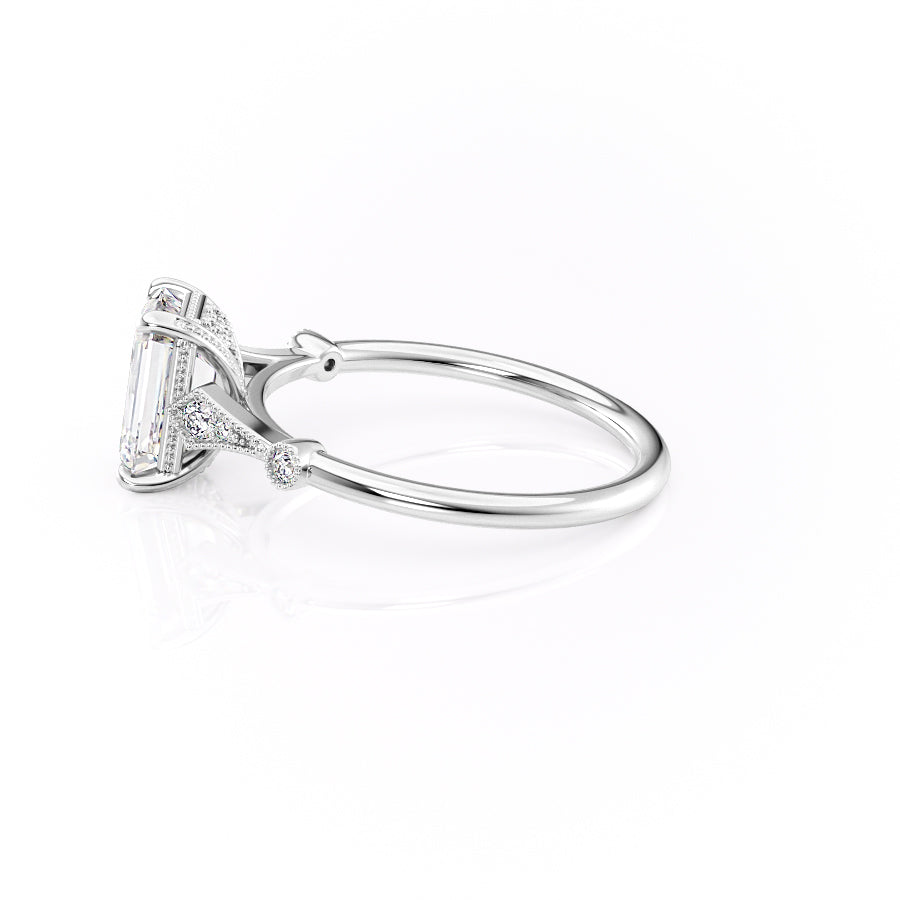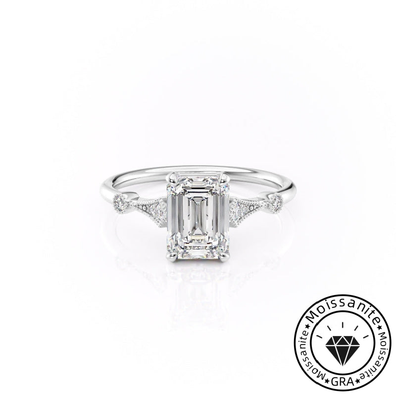 Minimalist Solarii Moissanite 2.0ct Emerald Cut 925 Sterling Silver Side Stone Engagement Ring