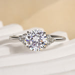 Ornate Solarii Moissanite 1.2ct Round Cut 925 Sterling Silver Side Stone Engagement Ring