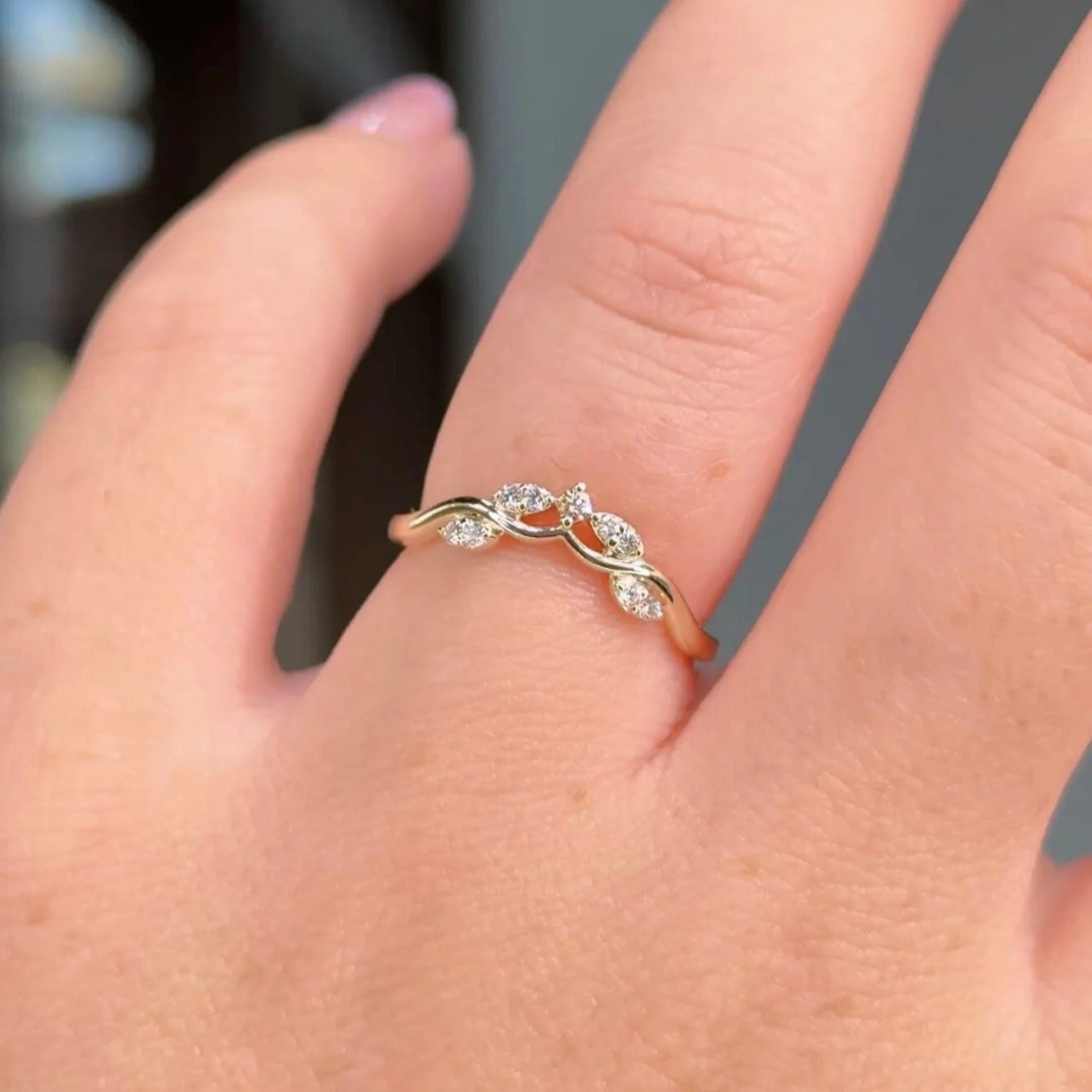 Curved 925 Sterling Silver Round Cut Wedding Ring