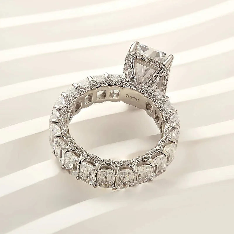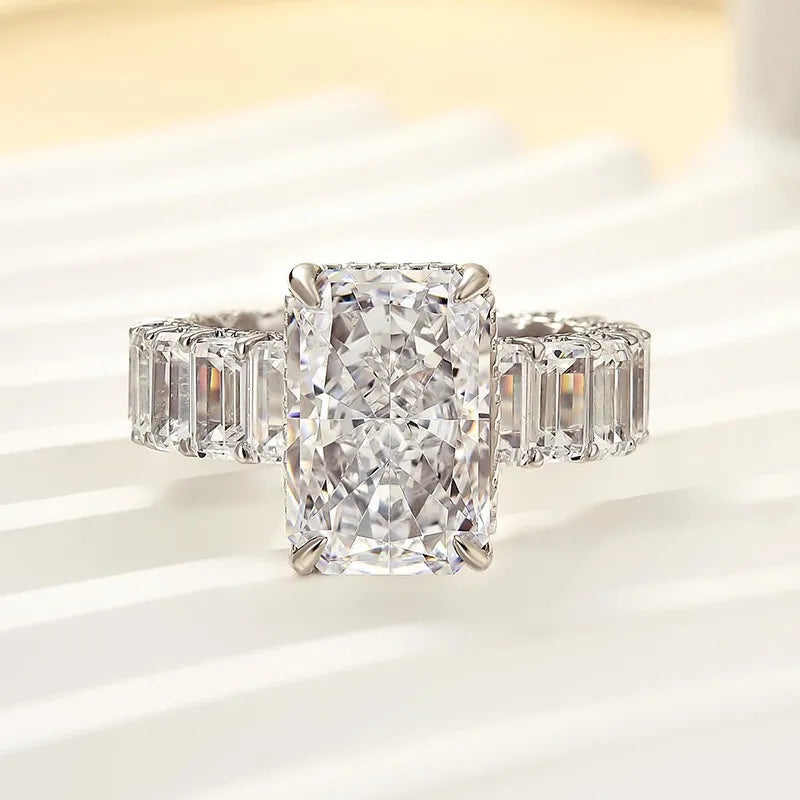 Elegant Pave Radiant Cut 5.0ct Engagement Ring In Sterling Silver – SolariiJewelry