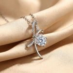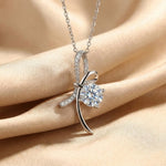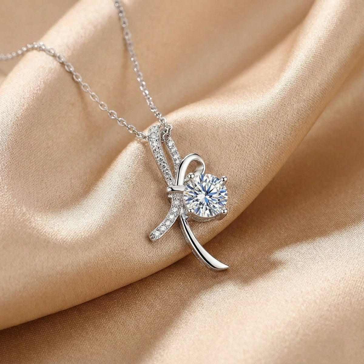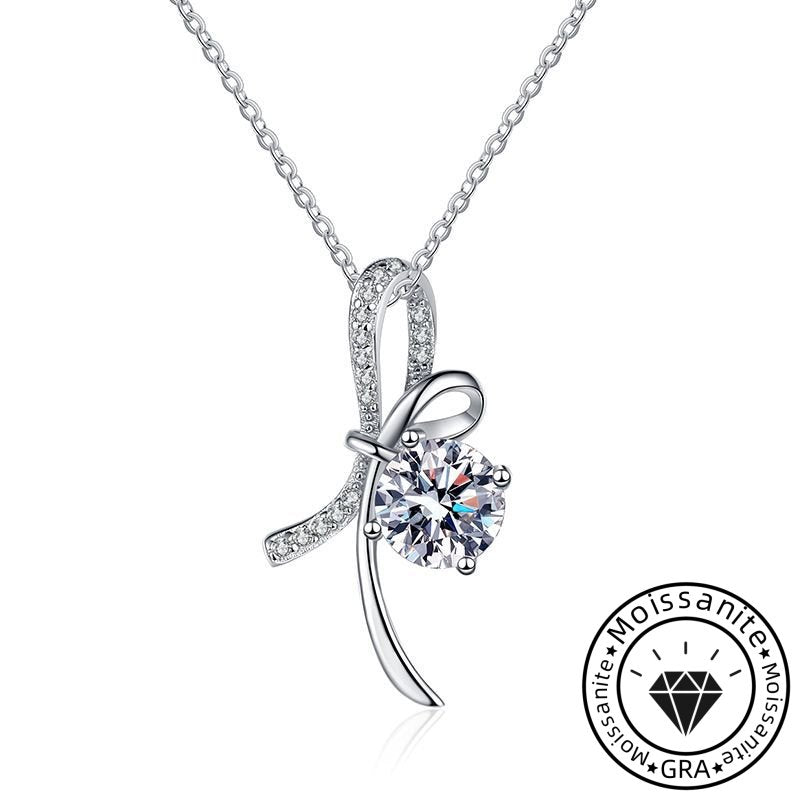 Moissanite Round Cut Ribbon 925 Sterling Silver Necklace