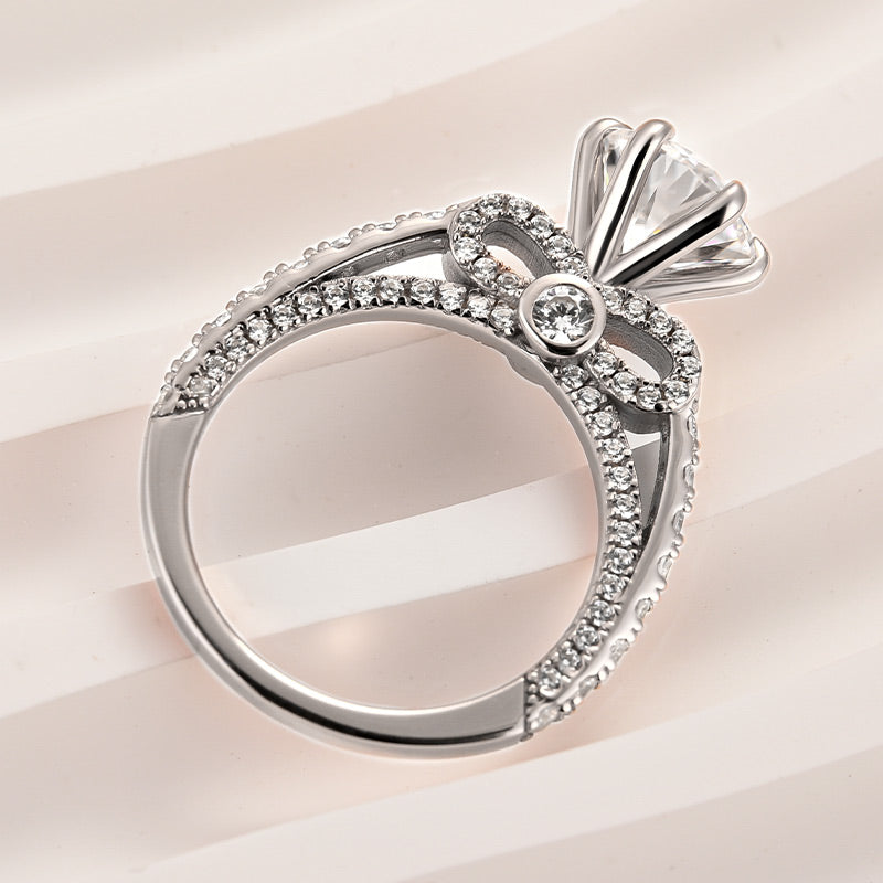 Solarii Moissanite 3.0ct Bow Base Design Sterling Silver Engagement Ring