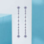 These earrings are inspired by the cascading droplets of water, symbolizing purity and grace. The row of gemstones forms an elegant curve, reminiscent of water droplets gracefully falling.