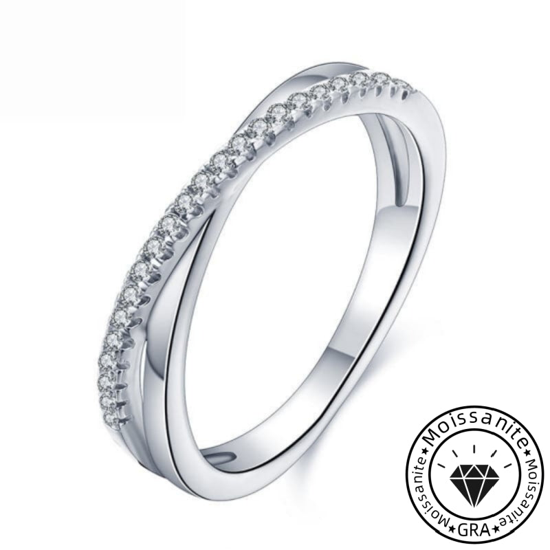 Solarii Moissanite 0.15ct Round Cut X Criss Cross 925 Sterling Silver Wedding Band