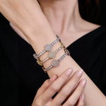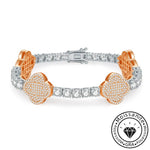 This exquisite bracelet features round-cut moissanite stones, renowned for their brilliance and durability, set in rhodium-plated 925 sterling silver for enhanced shine and tarnish resistance. The delicate tassel trim adds a sophisticated touch, making it a refined accessory suitable for both everyday elegance and special occasions. Crafted with expert precision, this piece combines timeless design with lasting quality.