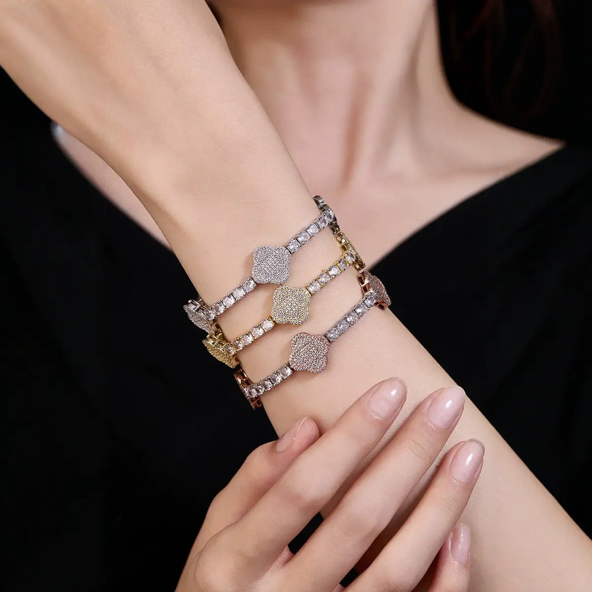 Tassel-trimmed round cut moissanite bracelet, rhodium plated, 925 ster – SolariiJewelry