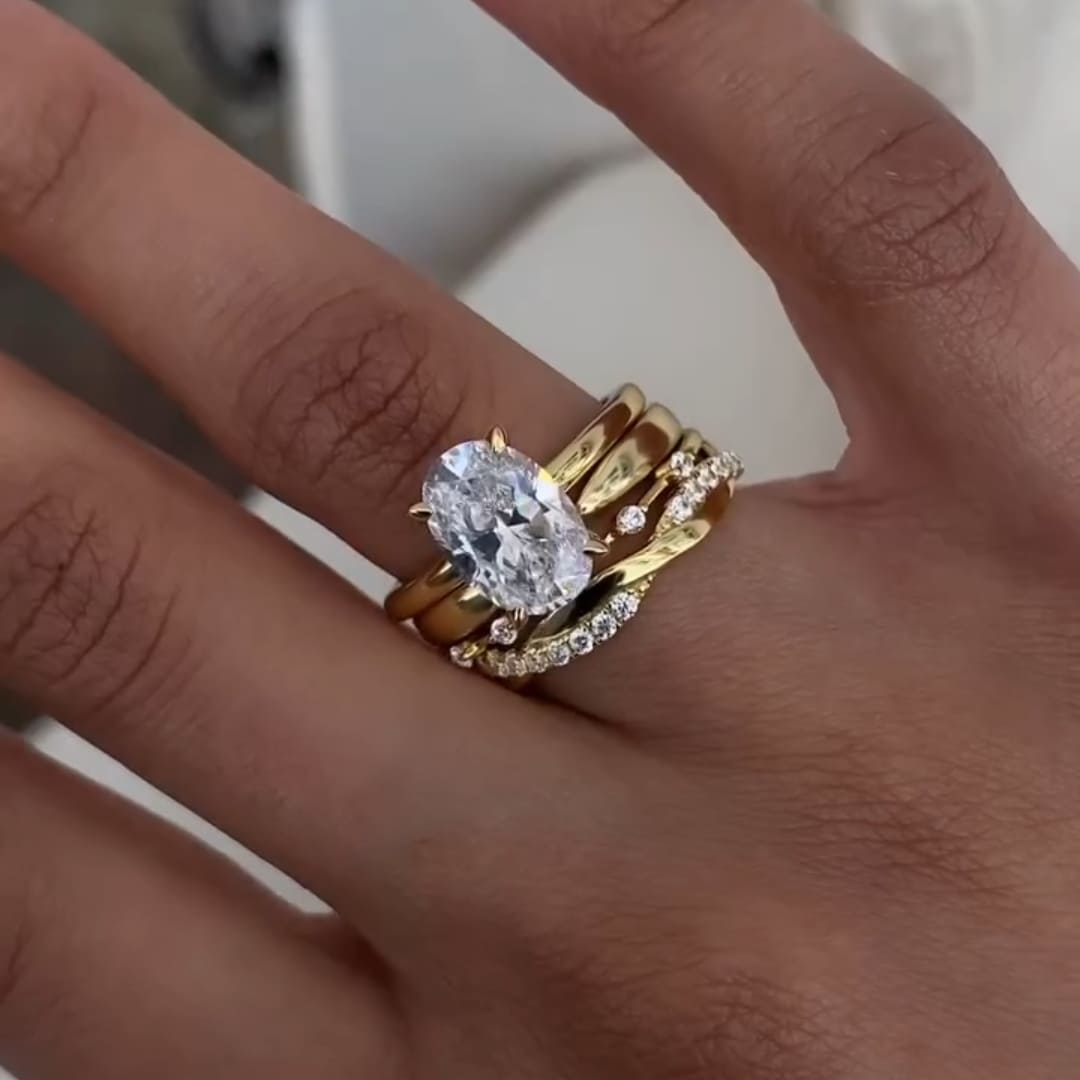 Starlit Oval Cut 5.0 Ct 4PC Ring 925 Sterling Silver Wedding Ring Set