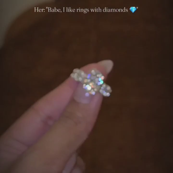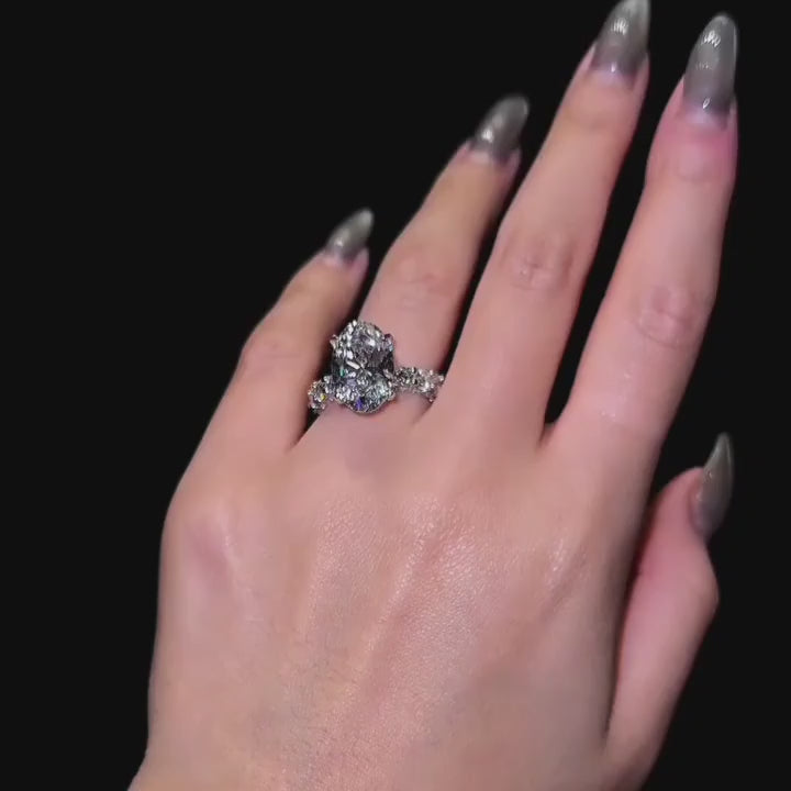 Seamless Three Stone Oval Cut 5.0ct Engagement Ring In Sterling Silver