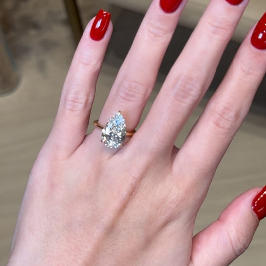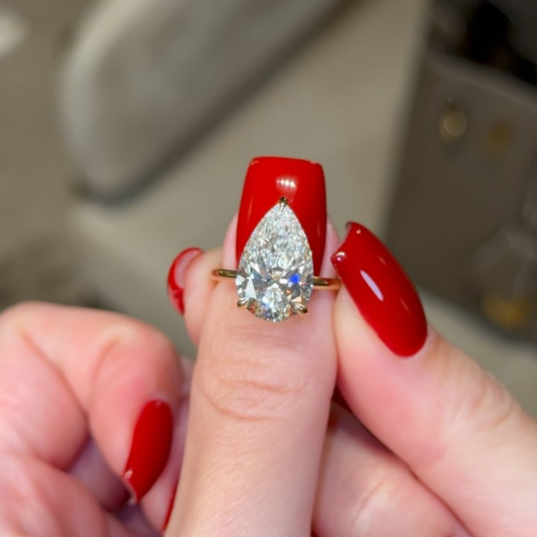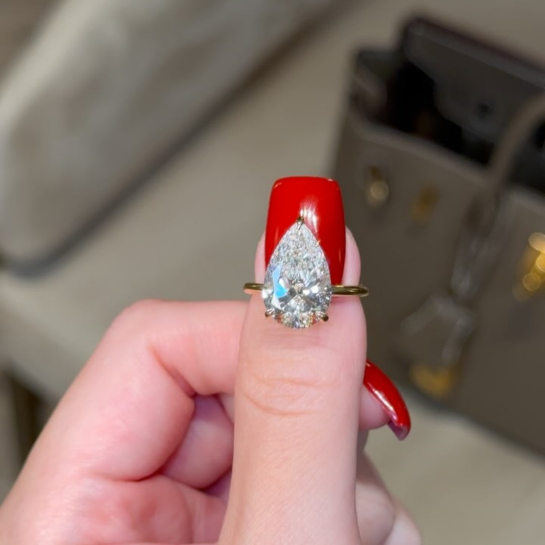 Refined Hidden Halo Pear Cut 4.0ct Engagement Ring In Sterling Silver – SolariiJewelry