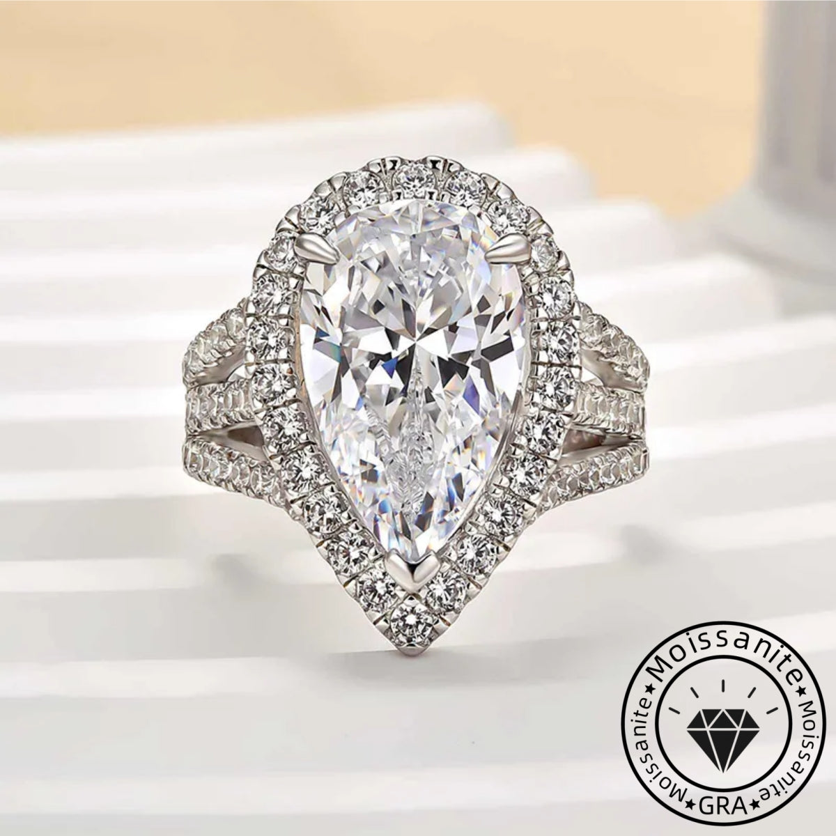 Vintage 4.5ct Split Shank Halo Pear Cut Engagement Ring In Sterling Si – SolariiJewelry