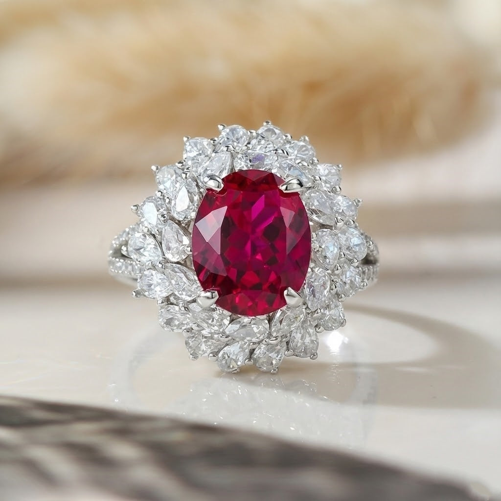 Gorgeous Flower Shape 3.0ct Oval Cut Ruby Engagement Ring