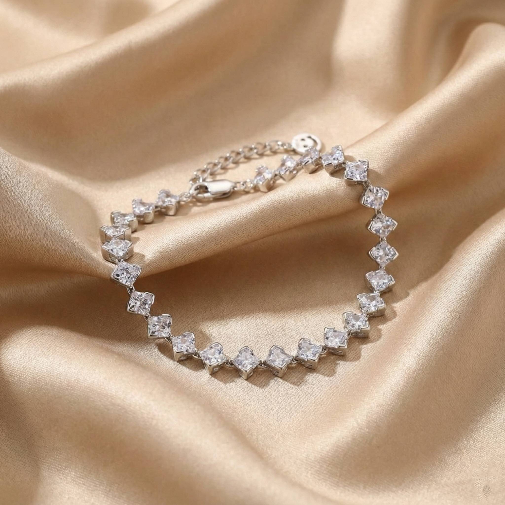 Princess Cut Simulated Diamonds Tennis Bracelet in Sterling Silver