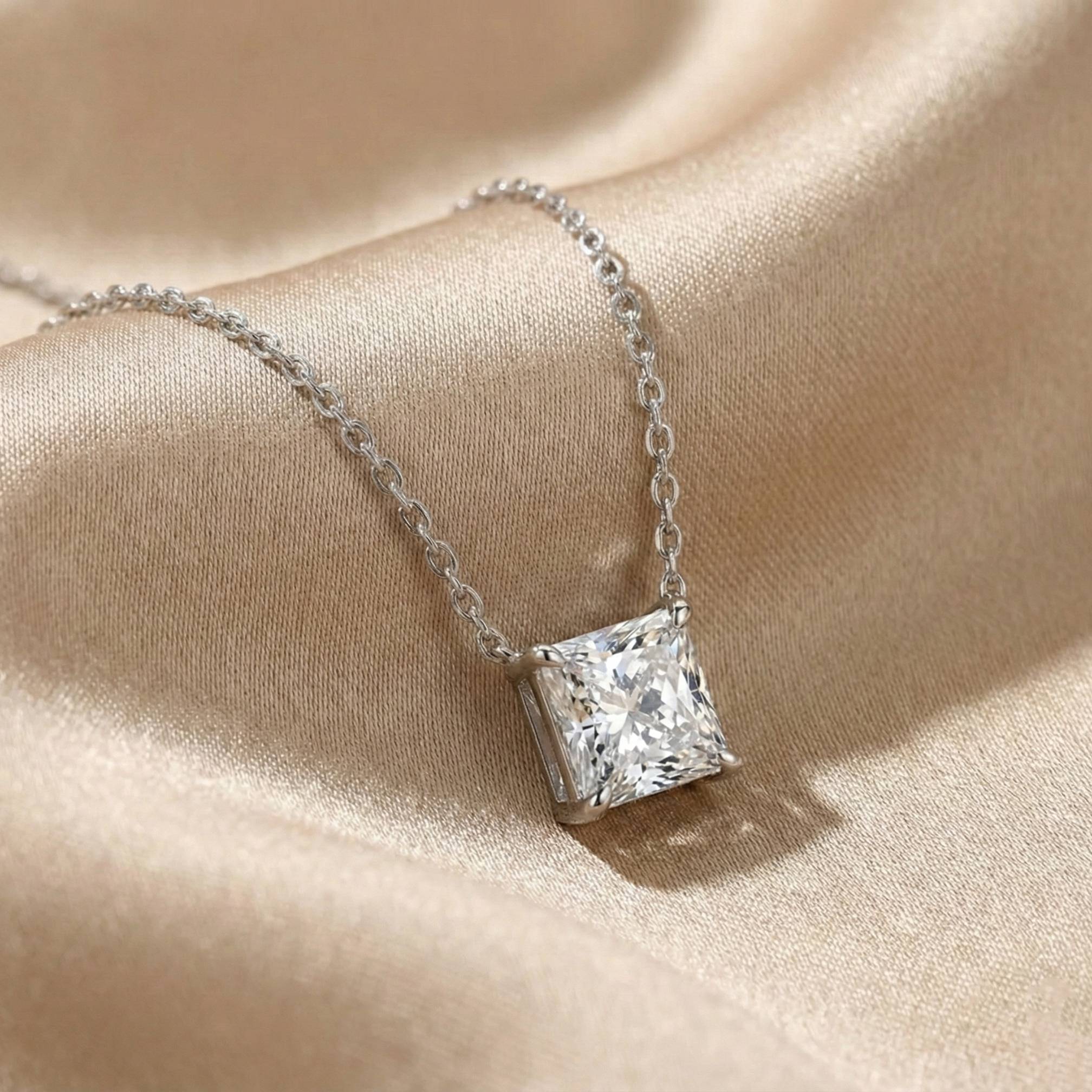 Princess Cut Pendant Necklace in 925 Sterling Silver