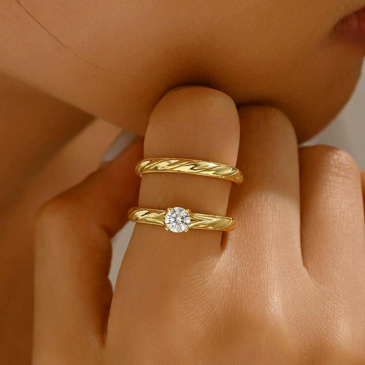 Antique Round Cut 1.0ct Solitaire Moissanite Ring Sets – SolariiJewelry