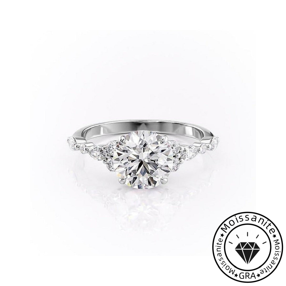 Graceful Solarii Moissanite 2.0ct Round Cut 925 Sterling Silver Side Stone Engagement Ring