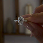 Expertly crafted to perfection, this Intricate Oval Cut 4.0ct Pave Engagement Ring In Sterling Silver is a dazzling symbol of love. With its intricately cut oval diamond and sparkling pave setting, it radiates elegance and sophistication. A timeless piece that will capture the hearts of your loved one, making it the perfect choice for an engagement ring.