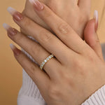 With its pave set design, this ring feels like holding a piece of the starry sky. Each Cubic Zirconia sparkles like a star, representing radiant moments of love throughout the journey. White gold plating embodies the purity of love, while yellow gold symbolizes a warm promise, making this ring both splendid and deeply meaningful.