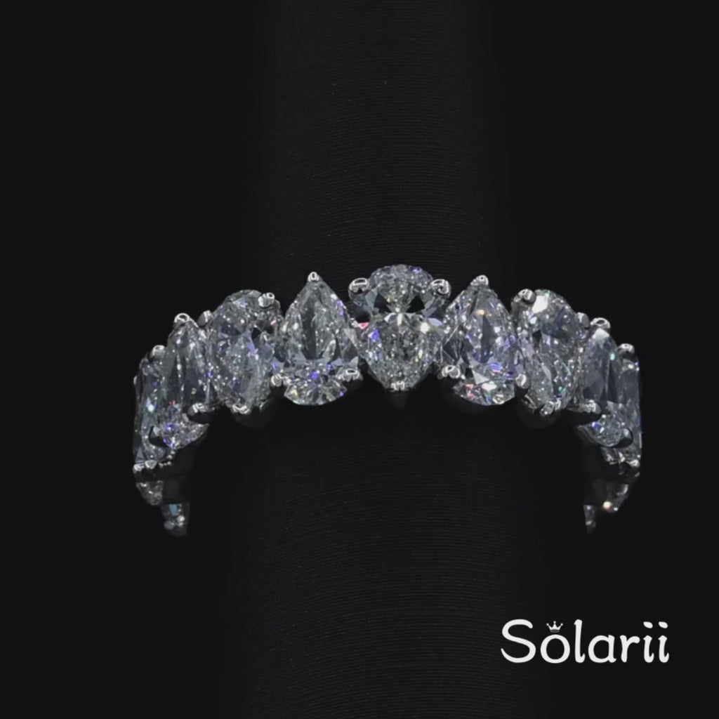 Elegant 925 Sterling Silver Pear Cut Curved Eternity Wedding Ring