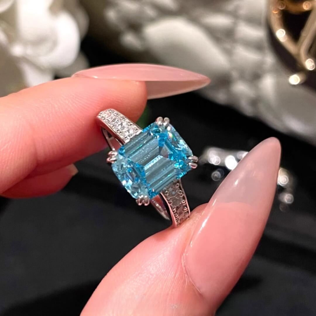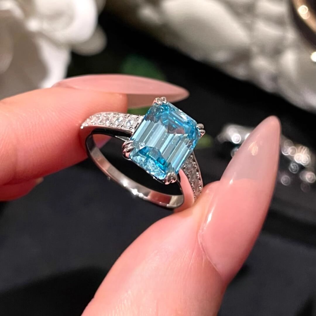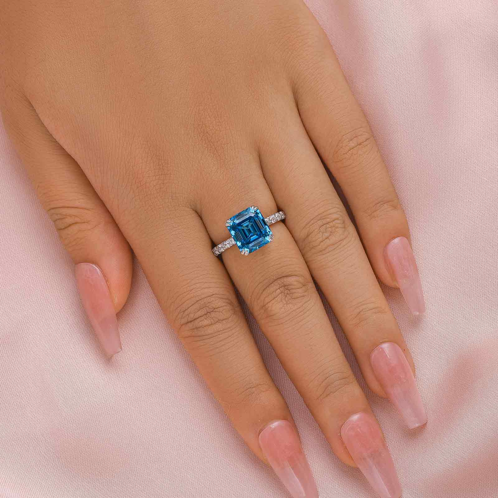 Elegant 4.5ct Blue Sapphire Asscher Cut Engagement Ring