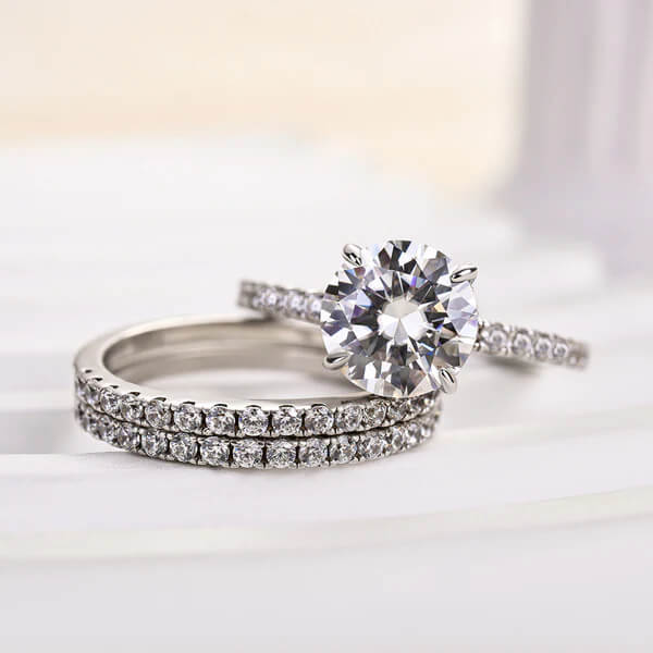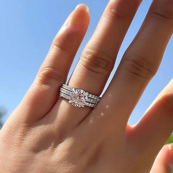 Elegant  Sterling Silver Round Cut 3PC Wedding Ring Set