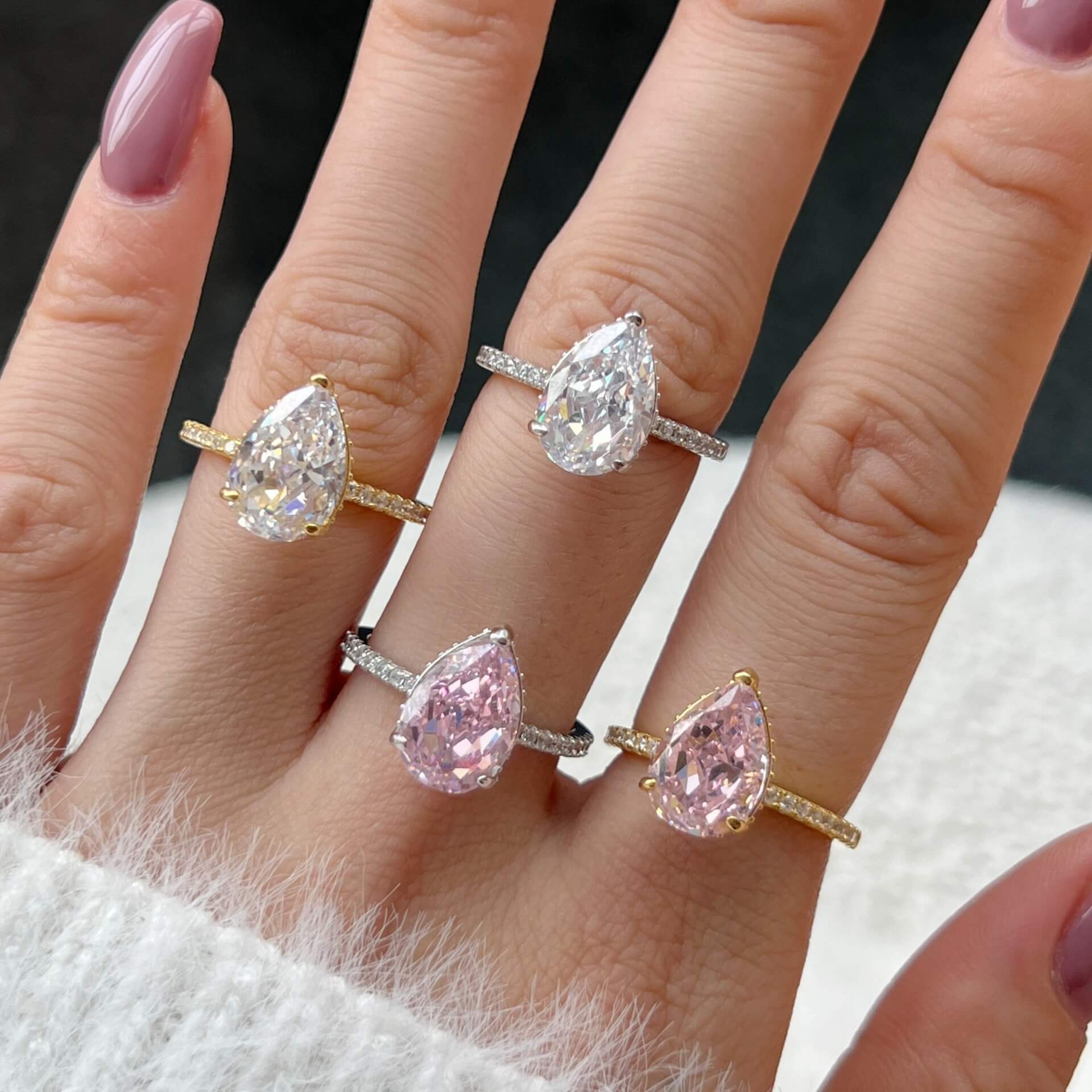Inspired by the teardrop shape found in nature, this ring symbolizes purity and elegance. The combination of pink and colorless gemstones highlights a blend of softness and modernity, making it suitable for any occasion.