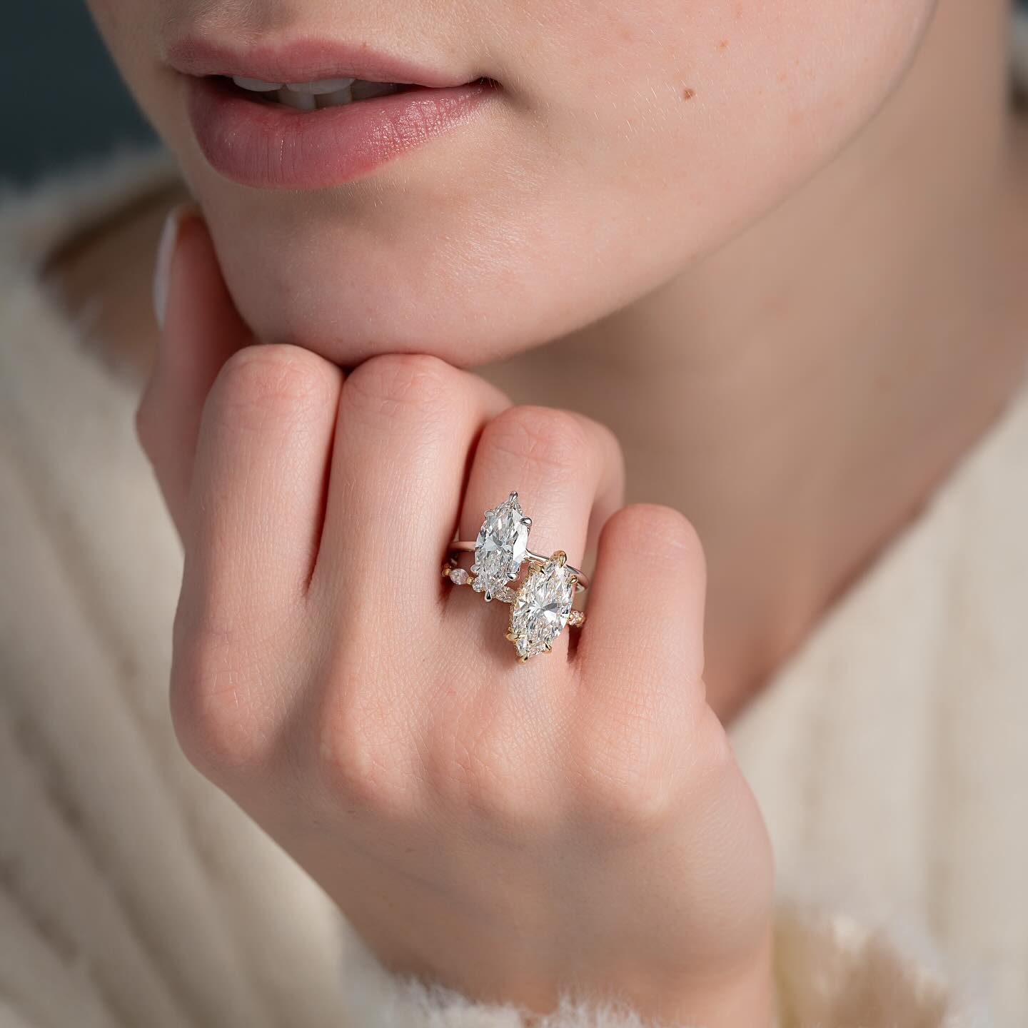 Named after the Marquise de Pompadour, this shape features pointed ends and an elongated body, creating a striking and regal appearance. The Marquise Shape maximizes carat weight, giving the diamond an impressive size and brilliance. Ideal for those who love to make a statement.