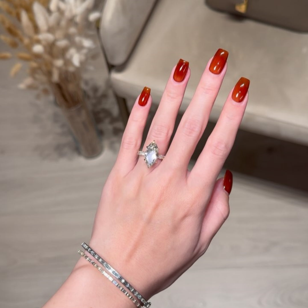 We use high-quality moissanite and Simulated Diamonds, both ethically and sustainably lab-created. These stones sparkle just as brilliantly as diamonds