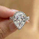 Moonlit-inspired Halo Design Pear Cut 5.0ct Engagement Ring In Sterling Silver