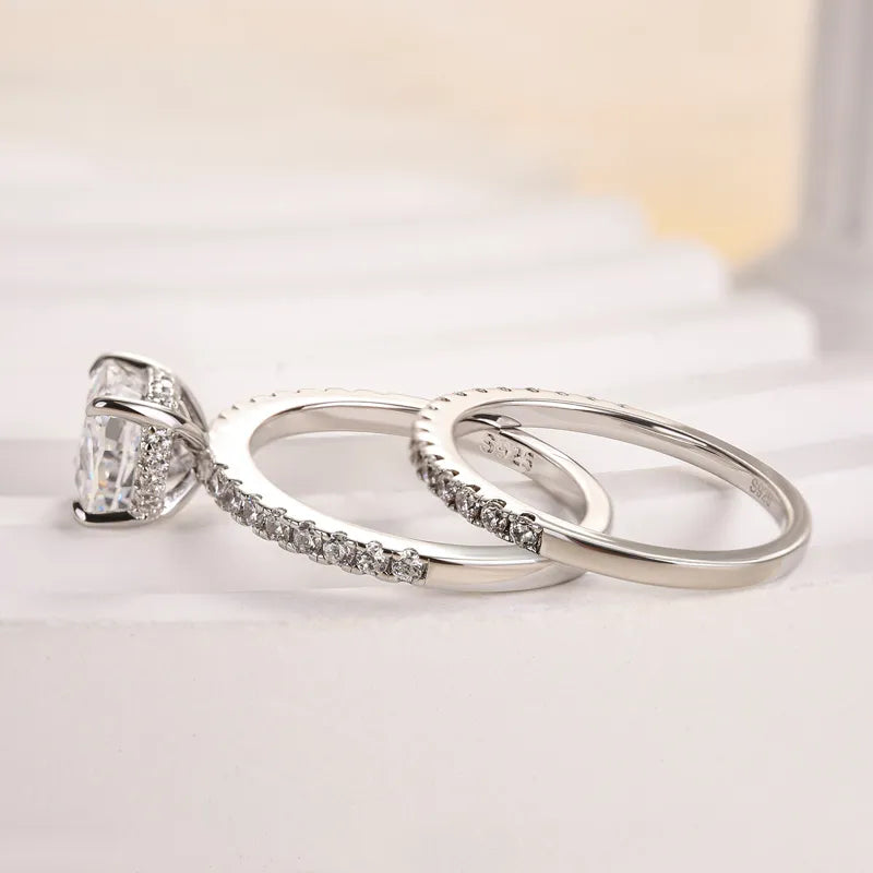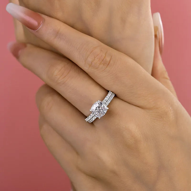 Opulent Cushion Cut 2.0 ct Hidden Halo 925 Sterling Silver Wedding Ring Set