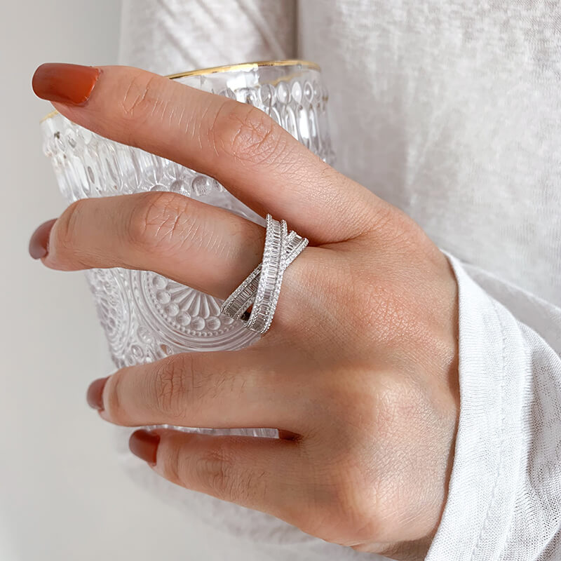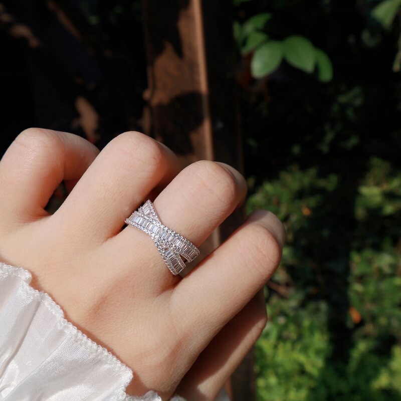 Radiant X Criss Cross Emerald Cut 925 Sterling Silver Wedding Band – SolariiJewelry