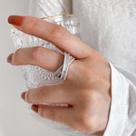 When you’re not wearing it, store your jewelry in a jewelry box or pouch. A quick polish with a silver cloth will keep it shining. We recommend taking it off when showering, applying lotions, or during workouts to prevent oxidation. And while it's tempting, it's best not to wear it to bed!