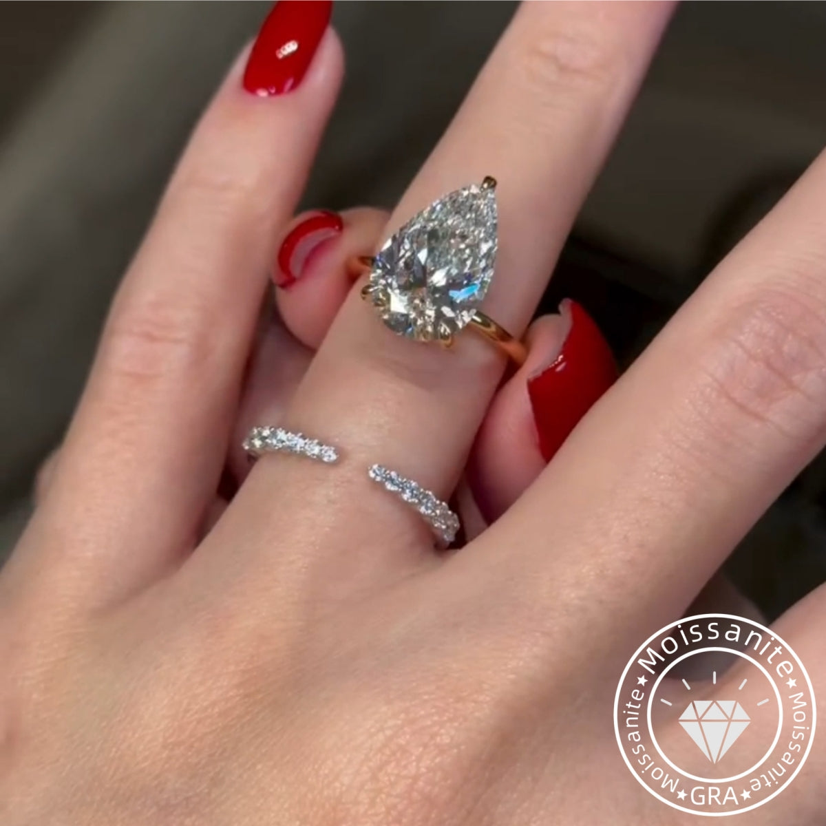 This exquisite wedding ring set features a stunning 5.0-carat pear-cut solitaire gemstone, expertly set in high-quality 925 sterling silver. Its brilliant cut maximizes sparkle and elegance, making it a timeless symbol of commitment. Crafted with precision, this set offers both durability and refined beauty, perfect for those seeking a sophisticated and lasting expression of love.