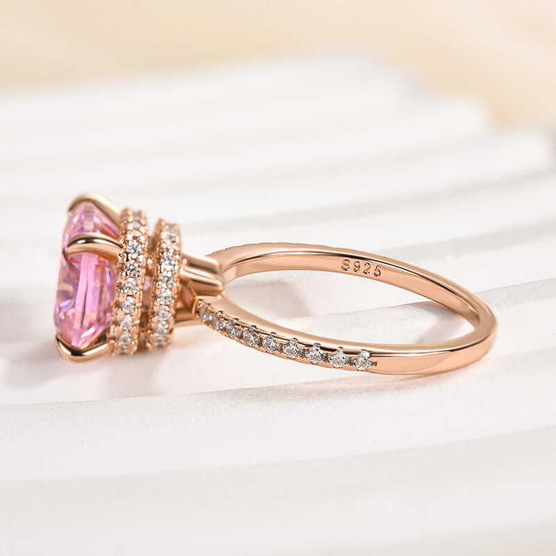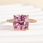 This ring draws inspiration from the softness and romance of blush tones. The cushion-cut pink gemstone is set in a simple yet elegant design, allowing the stone's natural beauty to take center stage.
